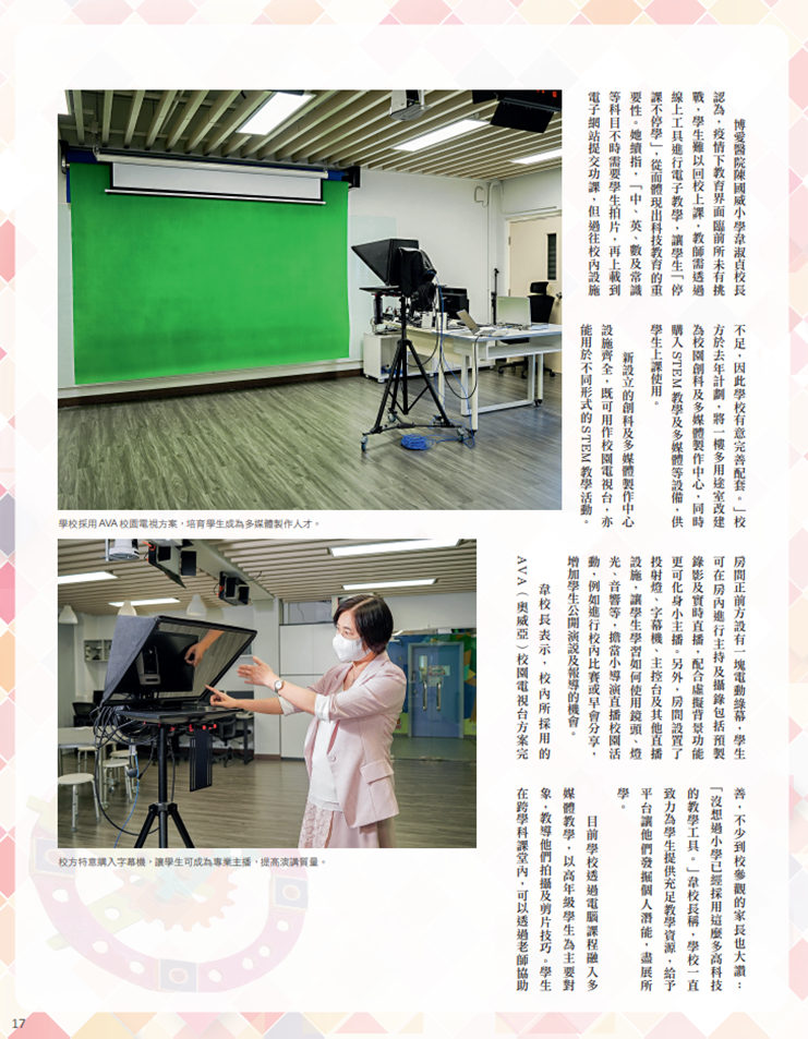 In recent years, with the help of information technology, schools in Guangdong province and Hong Kong district area have actively expanded channels for educational exchange and cooperation, and boosted educational exchanges and development in the Greater Bay Area. Most recently, the "Open-School Education Special Issue" of Hong Kong Ming Pao Education Publishing Co., Ltd. published the article "Campus Innovation and Multimedia Production Center, Equipped to cultivate talents in the 21st Century". Taking Pok Oi Hospital Chan Kwok-wai Primary School as an example, it showed the application results of education informatization in Hong Kong. Among them, the multimedia teaching center and online communication classroom of AVA assisted campus construction were introduced in detail.