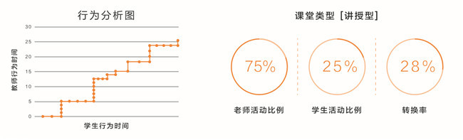 除了能節(jié)省評(píng)課的時(shí)間以外,奧威亞更是為評(píng)課專家提供實(shí)實(shí)在在的評(píng)課協(xié)助。在課程錄制的過程中,系統(tǒng)將自動(dòng)分析視頻數(shù)據(jù),并對(duì)應(yīng)生成ST行為分析圖和教學(xué)行為活動(dòng)餅圖,為評(píng)課專家提供更直觀的客觀數(shù)據(jù)。