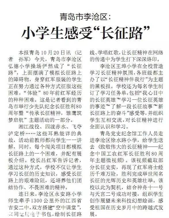 “長征精神”需要傳承和延續(xù),新時代的學(xué)生需要創(chuàng)新與成長。得益于教育信息的發(fā)展,兩地的學(xué)生得以“零距離”互動交流,更通過新型的教育方式將“長征精神”深植心中。弘揚長征精神,走好今天的長征路。