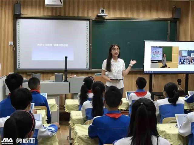 傳統(tǒng)的黨課一般是以看電影寫感想的形式為主,更多地是被動地感受黨的精神。與傳統(tǒng)黨課不同,通過奧威亞的全自動錄播,青島李滄區(qū)永安路小學(xué)與相隔1300多公里的江西省吉安市第二中學(xué)建起完美的“虛擬課堂”。兩地的學(xué)生主動地去學(xué)習(xí)、交流,讓不同的思維碰撞出火花。