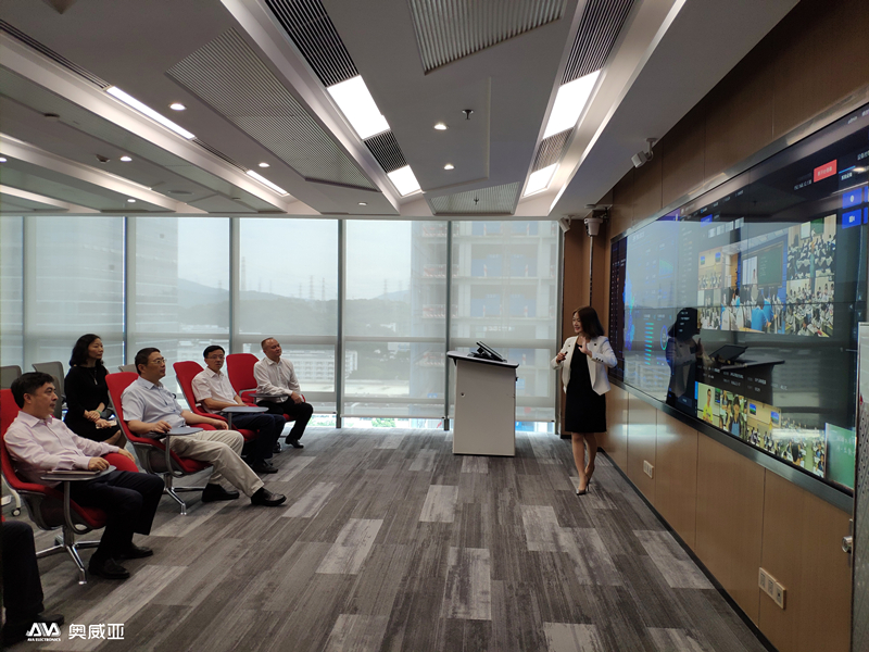 圖四:奧威亞專業(yè)講師向到場(chǎng)參觀的領(lǐng)導(dǎo)們?cè)敿?xì)講解產(chǎn)品