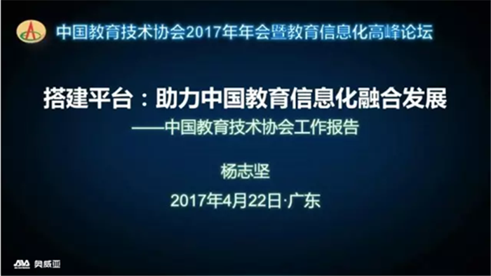 中國(guó)教育技術(shù)協(xié)會(huì)會(huì)長(zhǎng)楊志堅(jiān)向會(huì)員代表作了題為“搭建平臺(tái):助力中國(guó)教育信息化融合發(fā)展”的工作報(bào)告。