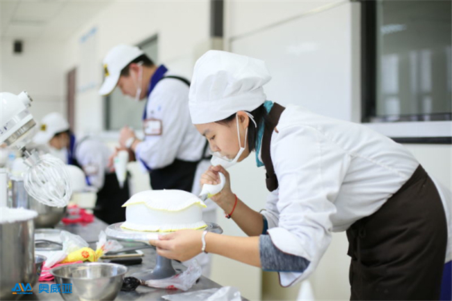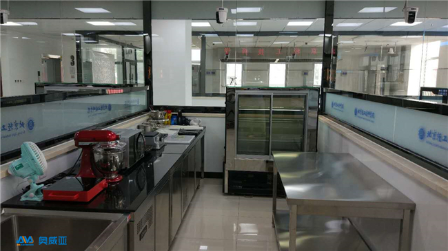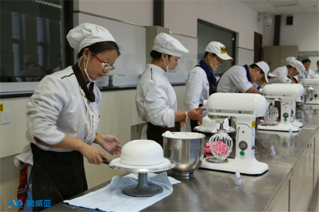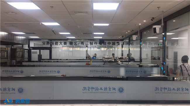 其實(shí),用于比賽的糖藝西點(diǎn)實(shí)訓(xùn)室只是北京輕工技師學(xué)院門(mén)頭溝教學(xué)區(qū)眾多實(shí)訓(xùn)室的其中一間。門(mén)頭溝教學(xué)區(qū)是華北地區(qū)規(guī)模最大的西點(diǎn)西餐培訓(xùn)基地,建有21間教、學(xué)、做一體化實(shí)訓(xùn)教室,包括食品烘焙實(shí)訓(xùn)室、西餐實(shí)訓(xùn)室、裱花實(shí)訓(xùn)室、咖啡實(shí)訓(xùn)室、翻糖實(shí)訓(xùn)室等等,其中有18間是奧威亞為該教學(xué)區(qū)量身打造完成的。