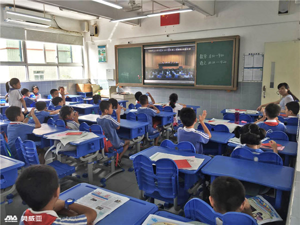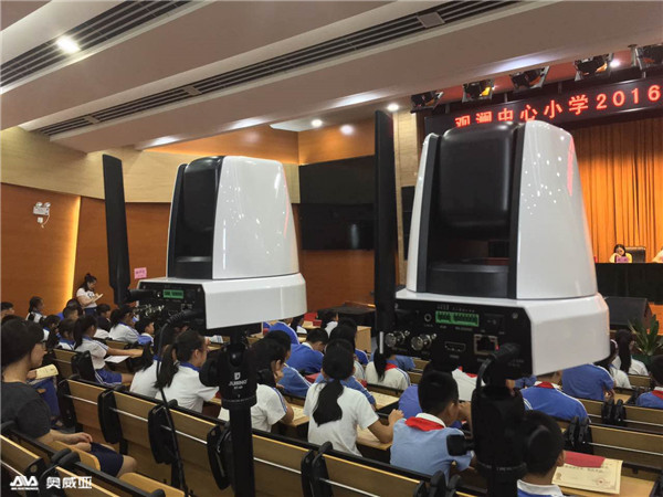 那么,如何讓其他未能到場的學(xué)生也能看到這次表彰大會(huì)呢?深圳觀瀾中心小學(xué)在錄播廠家奧威亞的協(xié)助下,利用教育信息化的技術(shù)優(yōu)勢,進(jìn)行了現(xiàn)場直播。通過奧威亞的移動(dòng)錄播V6和教學(xué)視頻應(yīng)用云平臺(tái),其他老師和學(xué)生在自己的教室就可以看到大會(huì)現(xiàn)場的情況。